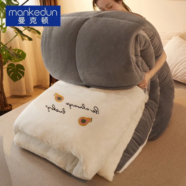 曼克顿 羊羔绒被子 冬季加厚保暖被芯双面绒学生宿舍冬被被褥床蒙卡罗尼 理想生活全棉被套床单枕套床上用品精品床上四件套20